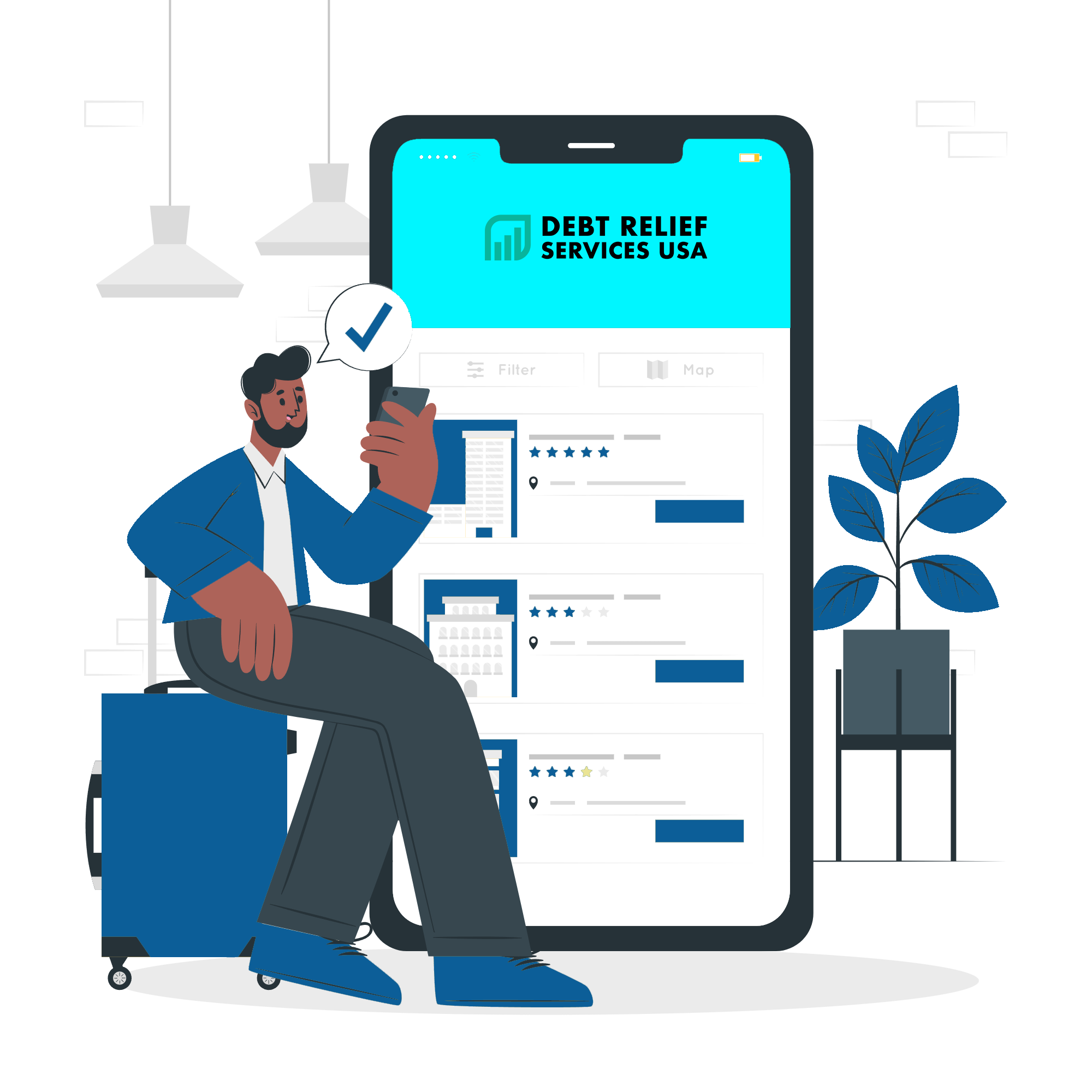 The operator of this website is not a lender, does not broker loans to lenders and does not make loans or credit decisions. This website does not constitute an offer or solicitation to lend. This website will submit the information you provide to a lender. Providing your information on this website does not guarantee that you will be approved for a loan. The operator of this website is not an agent, representative or broker of any lender and does not endorse or charge you for any service or product. Debt Relief Services USA or its affiliates may call you or send you SMS text messages as part of our/their service offering. The phone number or other service belonging to the called/messaged person(s) could incur charges for such contact. REPLY "HELP" FOR HELP, REPLY "STOP" TO CANCEL. By using this site you agree to the Terms & Conditions and Privacy Policy.
